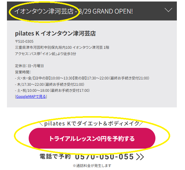 - ピラティスK(pilates K)とイオンタウン津河芸店の基本情報