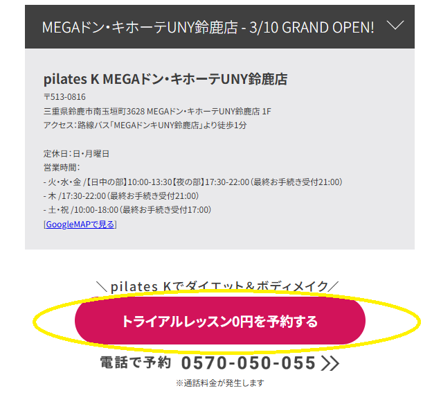 - ピラティスK(pilates K)とMEGAドン・キホーテUNY鈴鹿店の基本情報