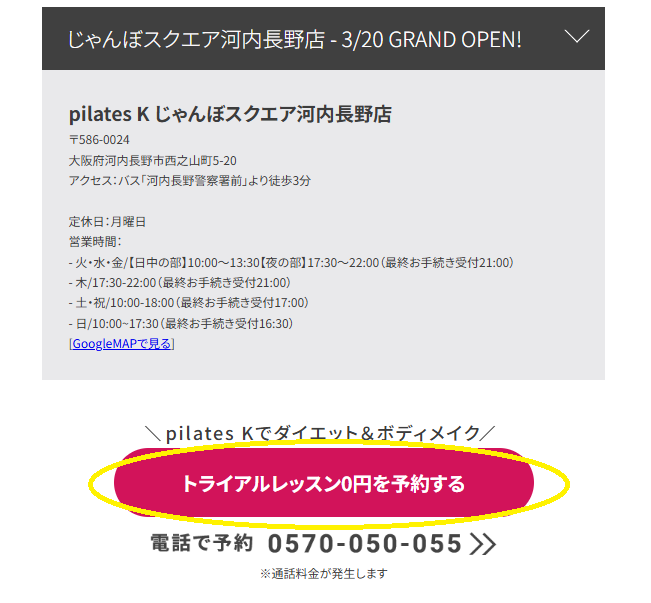 ピラティスK(pilates K)とじゃんぼスクエア河内長野店の基本情報