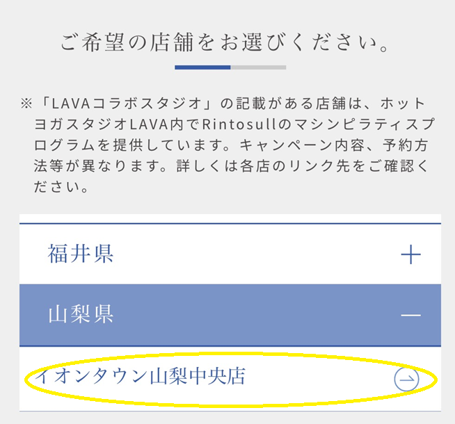 Step1.Rintosull公式サイトからピラティス体験会予約