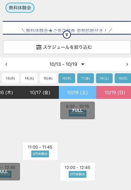 「スケジュールを絞り込む」の中から希望日時を検索・選択します。