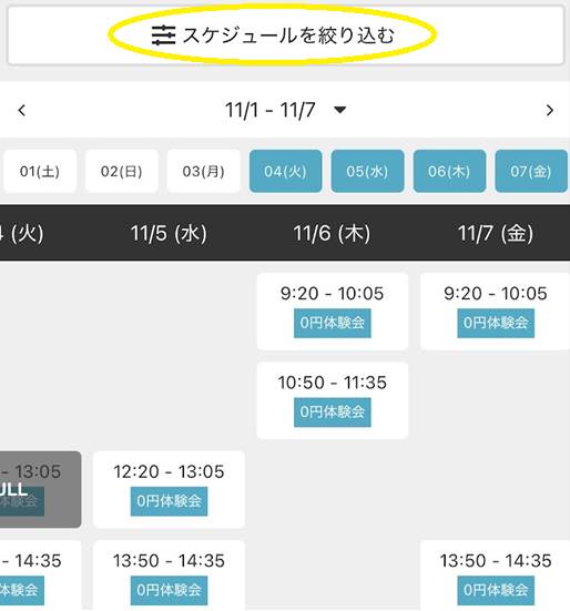 「スケジュールを絞り込む」の中から希望日時を検索・選択します。