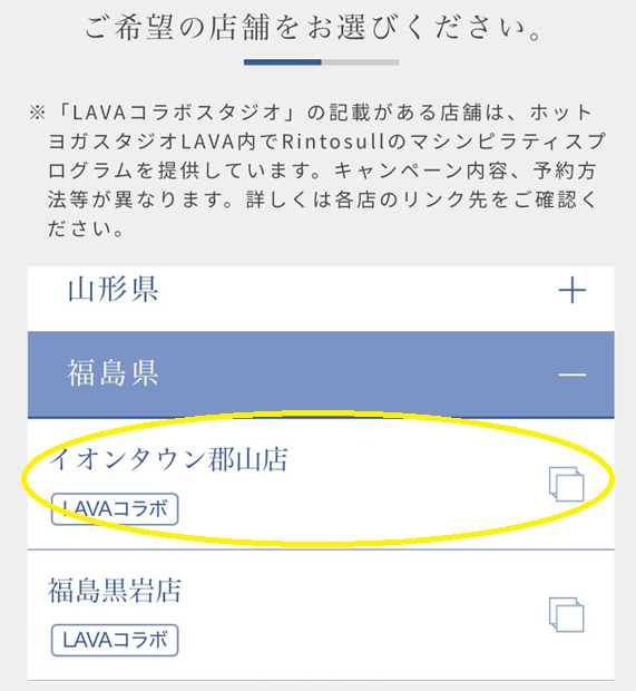 ※LAVAコラボ店の体験レッスンは予約時間の30分前に来店してください。