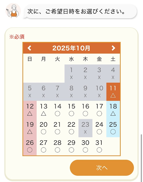 こちらはレッスン開始時間の120分前までの予約が必要です。