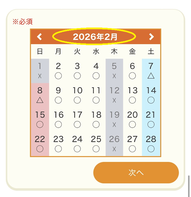 カレンダー画面で希望の日程を選択します。