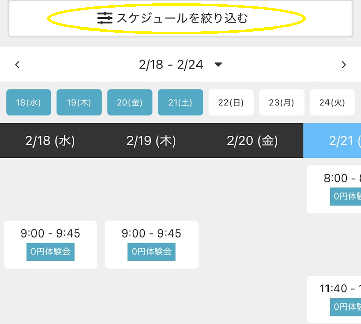 「スケジュールを絞り込む」の中から希望日時を検索・選択します。