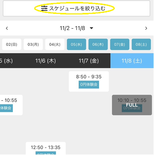 「スケジュールを絞り込む」の中から希望日時を検索・選択します。