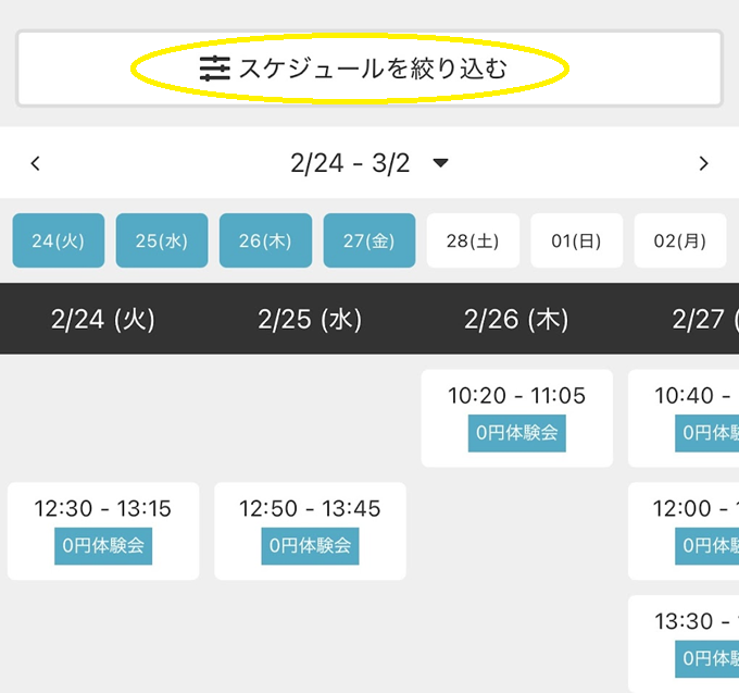 「スケジュールを絞り込む」の中から希望日時を検索・選択します。