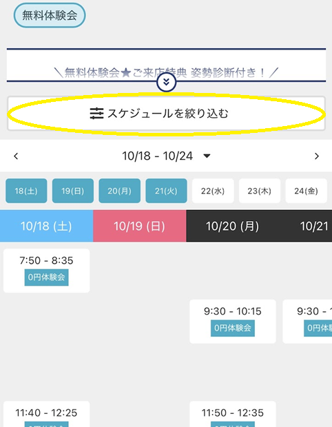 「スケジュールを絞り込む」の中から希望日時を検索・選択します。