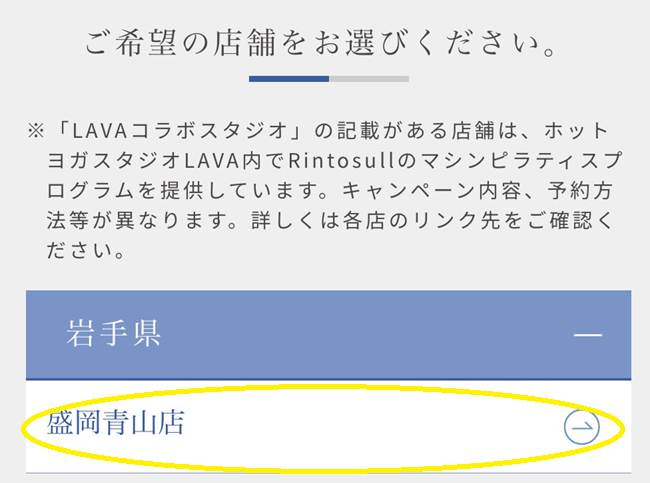 「盛岡青山店」を選択します。