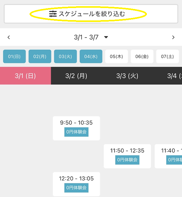 「スケジュールを絞り込む」の中から希望日時を検索・選択します。
