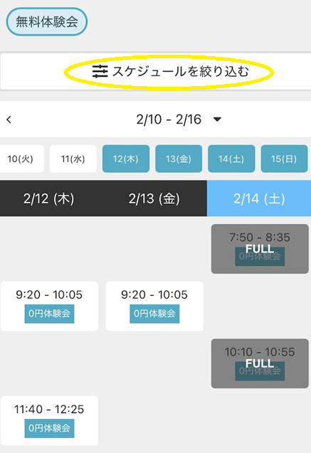 「スケジュールを絞り込む」の中から希望日時を検索・選択します。