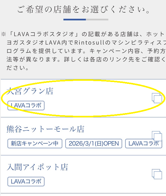| 所在地 | 〒330-0802 埼玉県さいたま市大宮区宮町1-83 TKY大宮ビル4F ホットヨガスタジオLAVA大宮グラン店内 |