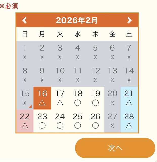 カレンダー画面で希望の日程を選択します。