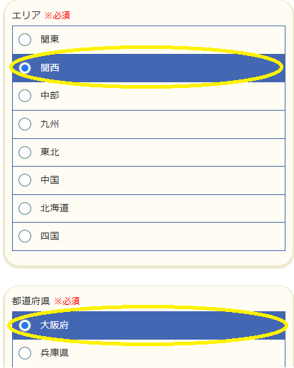 「都道府県を選択」から「大阪府」を選びます。