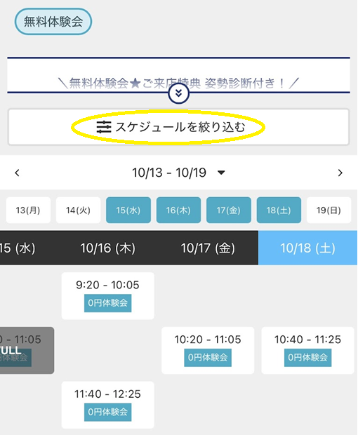 「スケジュールを絞り込む」の中から希望日時を検索・選択します。