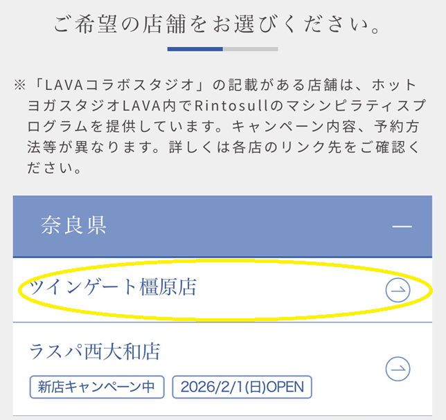 「ツインゲート橿原店」を選択します。