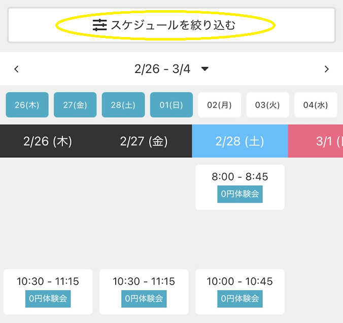 「スケジュールを絞り込む」の中から希望日時を検索・選択します。