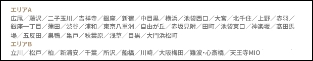 ※エリアB店舗にご在籍の会員様がエリアA店舗をご利用される場合のみ、