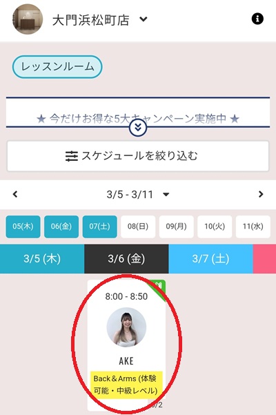 「マイページ」にログインし、現在予約されているレッスン名・日時等が表示されています。キャンセルしたい該当のレッスンを押し、案内に従ってキャンセルください。