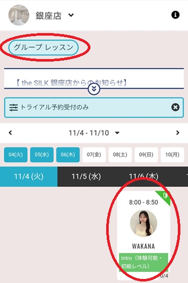 the SILK(ザ シルク)銀座店の体験レッスンの流れ