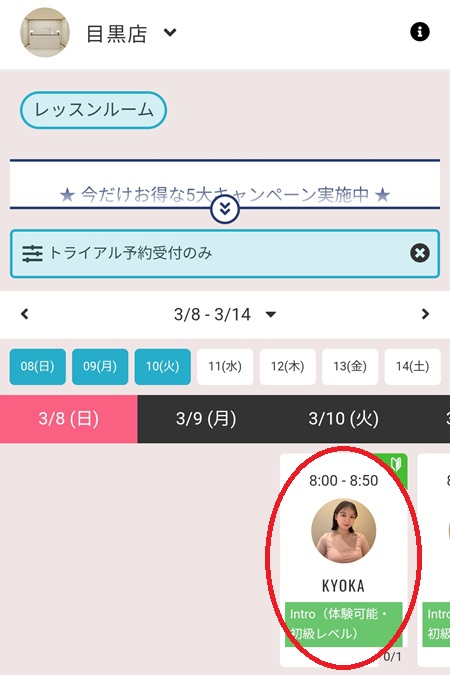 Step1.予約サイトから体験レッスン予約