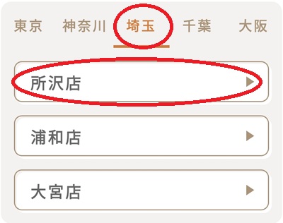 エリアは「埼玉」、スタジオは「所沢店」をクリック(タップ)します。