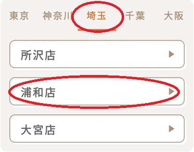 エリアは「埼玉」、スタジオは「浦和店」をクリック(タップ)します。