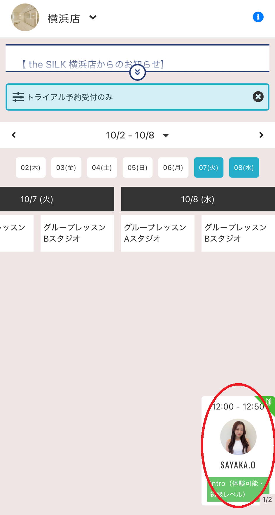 >>the SILKの体験レッスンを予約する